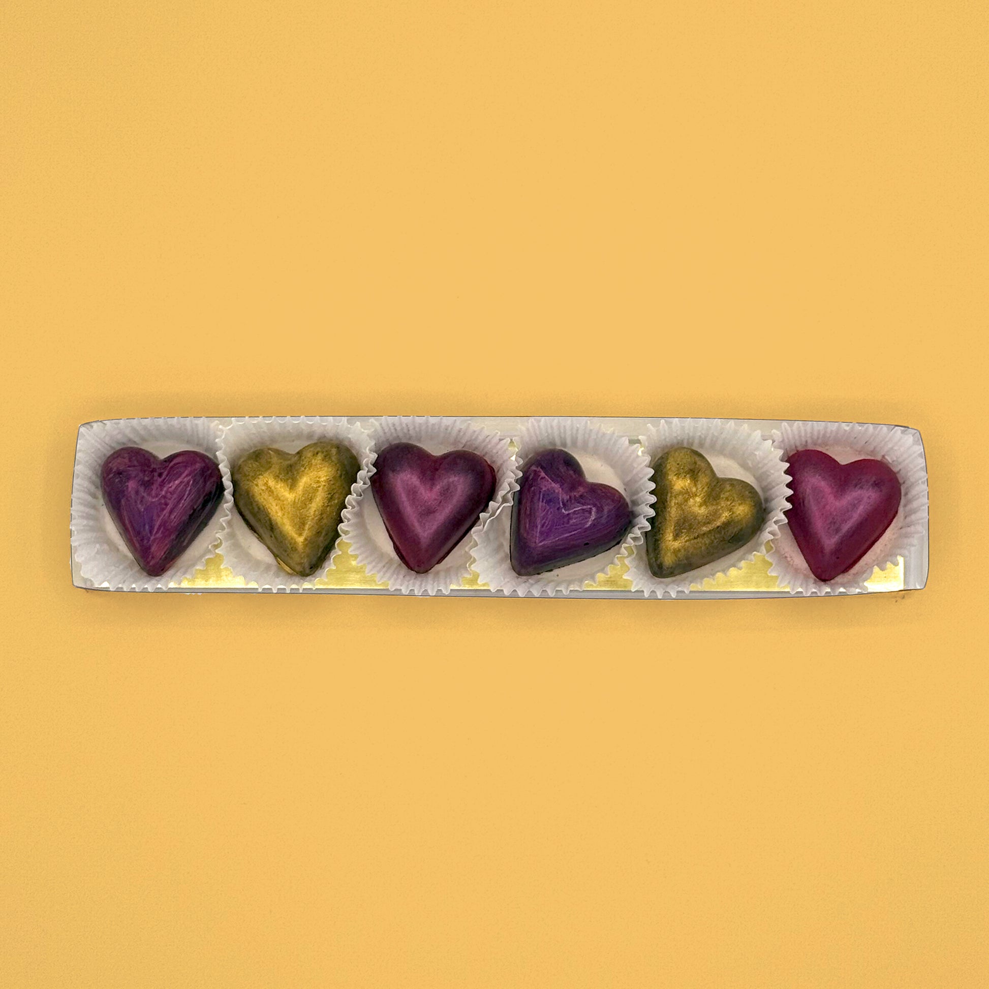Six Solid Hand-Painted Heart Chocolates